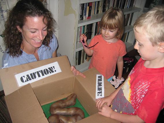 The Snake's dinner (more cake!) | Shelly and the kids meet the snake | Scott opens the "Caution" Box... |